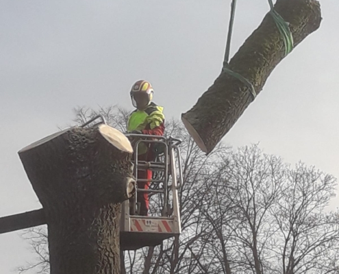 In diesen Fällen reden wir von Problem- bzw. Spezialfällungen. Zusammen mit kompetenten Partnerfirmen sind wir in der Lage, mithilfe von Seilklettertechnik, Arbeitsbühneneinsatz oder Kranunterstützung jede Art von Fällarbeiten sicher, sauber und zügig durchzuführen. Die Baumteile werden von uns in kleineren Teilstücken zu Boden gebracht und somit größere Schäden vermieden.